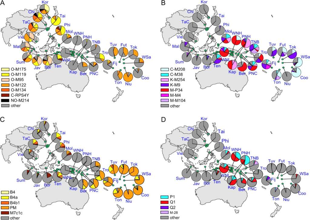 ‘According to researchers, Y-DNA (direct paternal lines) in Polynesia has more haplogroup variations than mtDNA (direct maternal lines); however, about 75% reporting their paternal line as Polynesian are in one of the below three Y-DNA haplogroups: