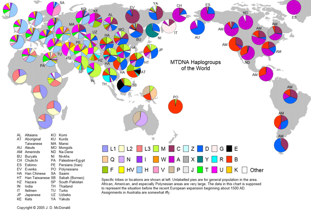 Haplogroup X – located globally, as well as North Africa, and the Near East.
