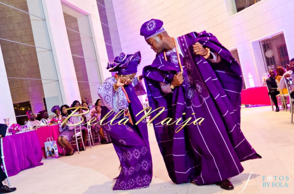 An African wedding with the bride and groom wearing royal purple