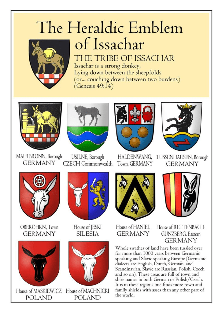 With that in mind it is quite remarkable that a misidentification for the tribe of Issachar (a son of Jacob), should have led this writer to the following symbols and heraldry.