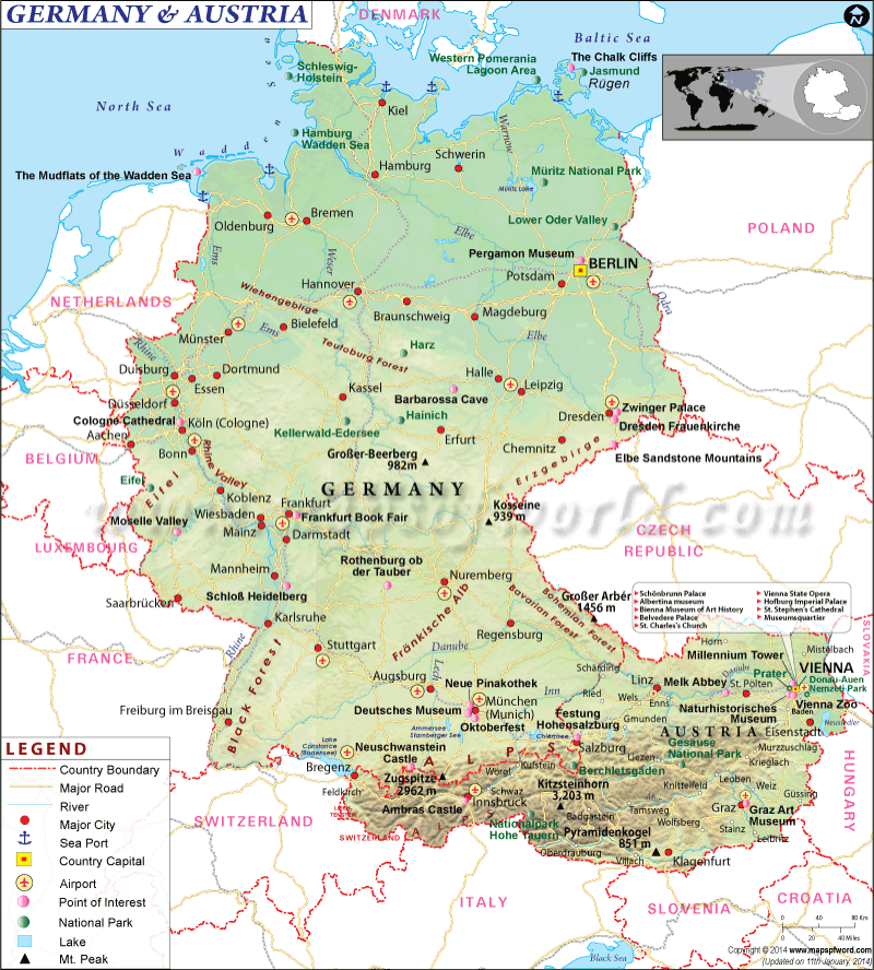 Austria is a landlocked mountainous country and with Switzerland, forms what has been characterised as the neutral core of Europe, gaining permanent neutrality in 1955. Austria has a population of 9,113,578 people; less than Sweden and more than Switzerland. Part of Austria’s prominence can be attributed to its geographic position at the centre of European traffic between east and west along the Danubian trade route, as well as north and south, through the Alpine passes. The capital of Austria is the historic Vienna (or Wien), the former seat of the Holy Roman Empire.