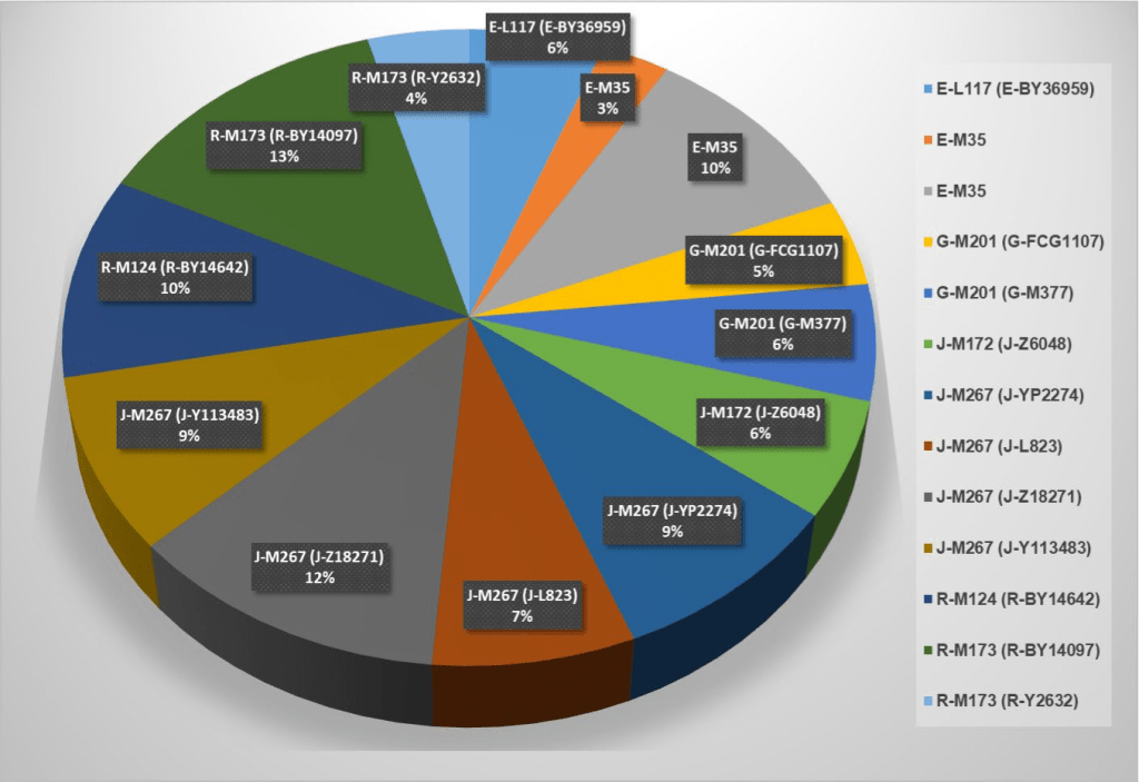 R1b     R1a       I1      I2a1     I2a2    E1b1b      J2      J1