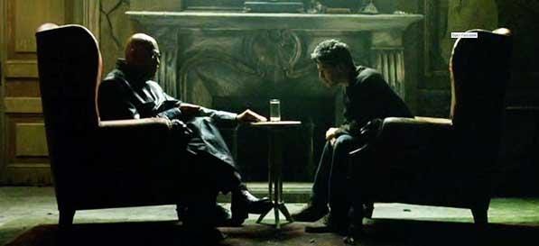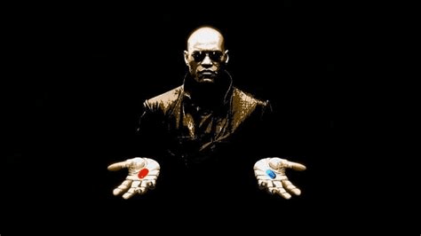 Holding out a capsule on each of his palms, he describes the choice facing Neo.