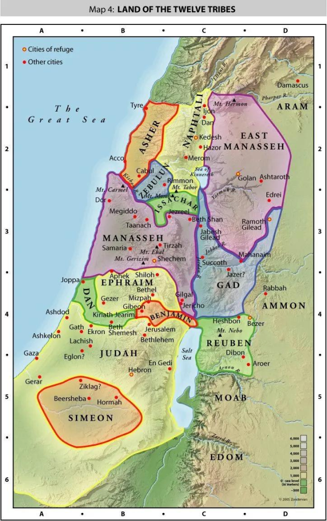 Colour code: Green = Nahor and Haran; Blue = Keturah and Ishmael; Yellow = Esau; Red = Jacob