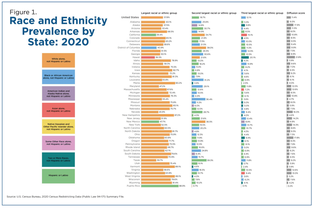‘This leaves, (Map 6) besides HI and DC, a northeastern set of 8 states with a distinctive combination of English and French-Italian, CT, ME, NH, RI, VT, plus MA, adding E European) and complex NY, adding Black and East European. The entire mosaic reveals the fascinating stories of immigration and subsequent migration, still ongoing and becoming ever more complex.’