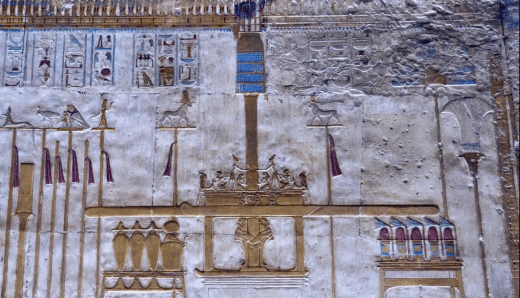 At this temple, we find a depiction considered of importance… The relief carving shows an extraordinary object that some say represents unknown technology. It’s called the Osiris Device or Osiris Stargate Device by William Henry, investigative mythologist.’